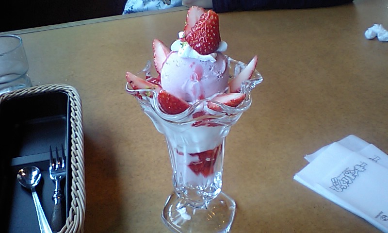 2.3volにニトリに連れてってもらったときに食べたびっくりドンキーのいちごパフェ,まあまあ…